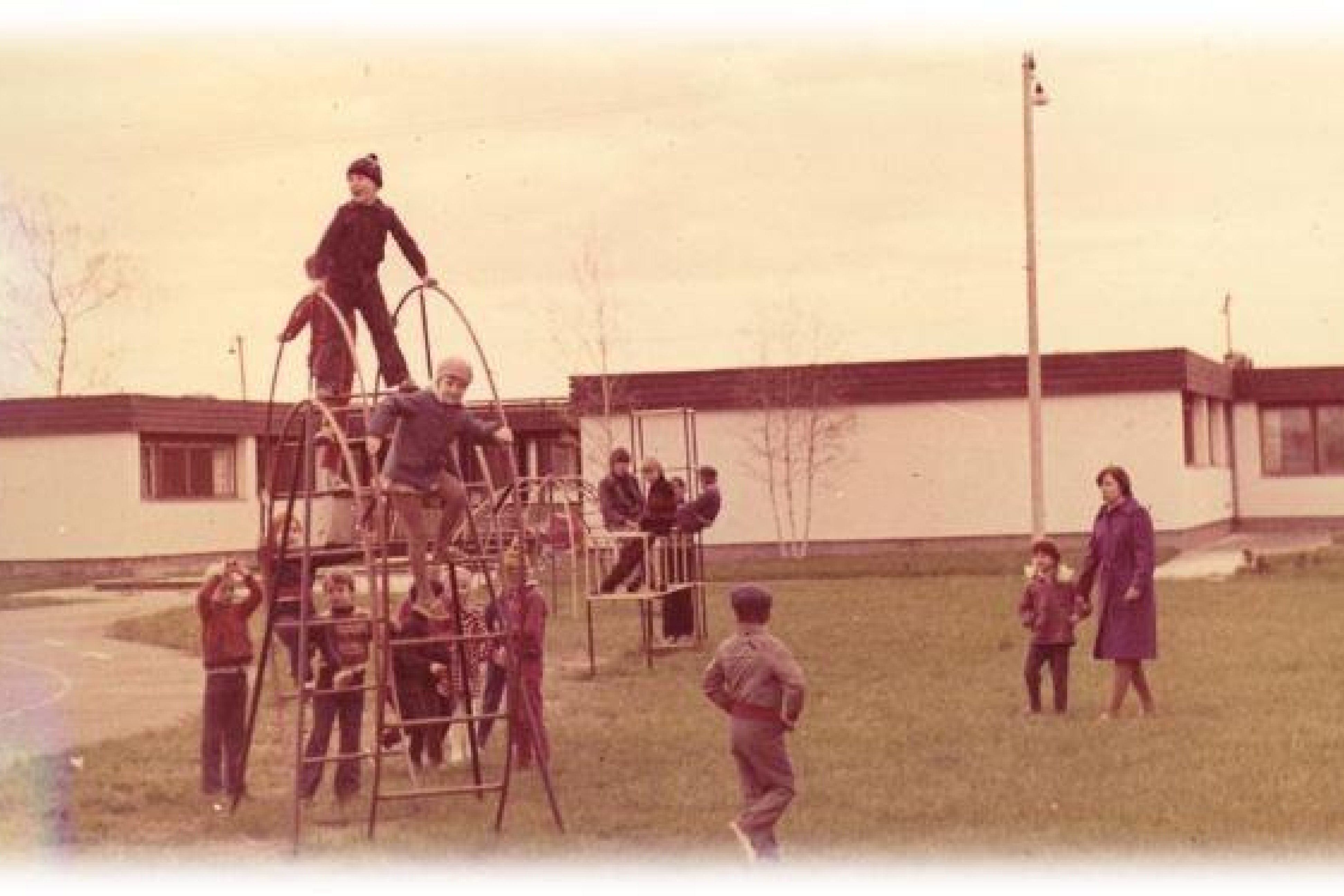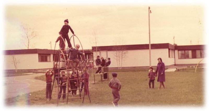 Otse lasteaia külje all tegutses agaralt Sauga sõjaväelennuväli. Kuna maad jagus ehitamise ajal lahedasti, sai lasteaed suure mänguväljaku, mis kohalike asutuste ja lastevanemate abiga lasteaia tegutsemise esimeste aastate jooksul madalast porimülkast kenaks muruplatsiks tehti ja kuhu ka puud-põõsad istutati ja lillepeenrad rajati. Territoorium eraldati aiaga ja nii said lapsed turvalise mängupaiga, mida senini kogu aleviku lapsed ka väljaspool lasteaia tööaega kasutavad. TREV-i abiga ehitati õuealale liiklusväljak, kuhu paigaldati kõik vajalikud märgid, kuid mis tänaseni säilinud ei ole.